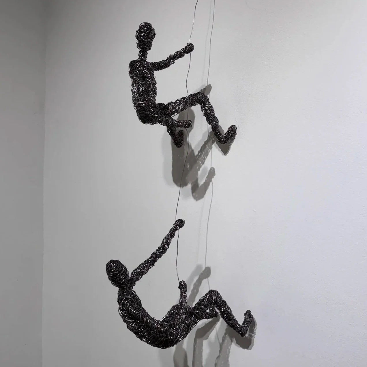 The action of climbing provides an opportunity to look at the figure suspended in space, to be able to see from angles less seen in most traditional sculpture. Also, like a glass half-full or half-empty, I find a subtle test of the optimism of the viewer in the ascending or descending interpretation.