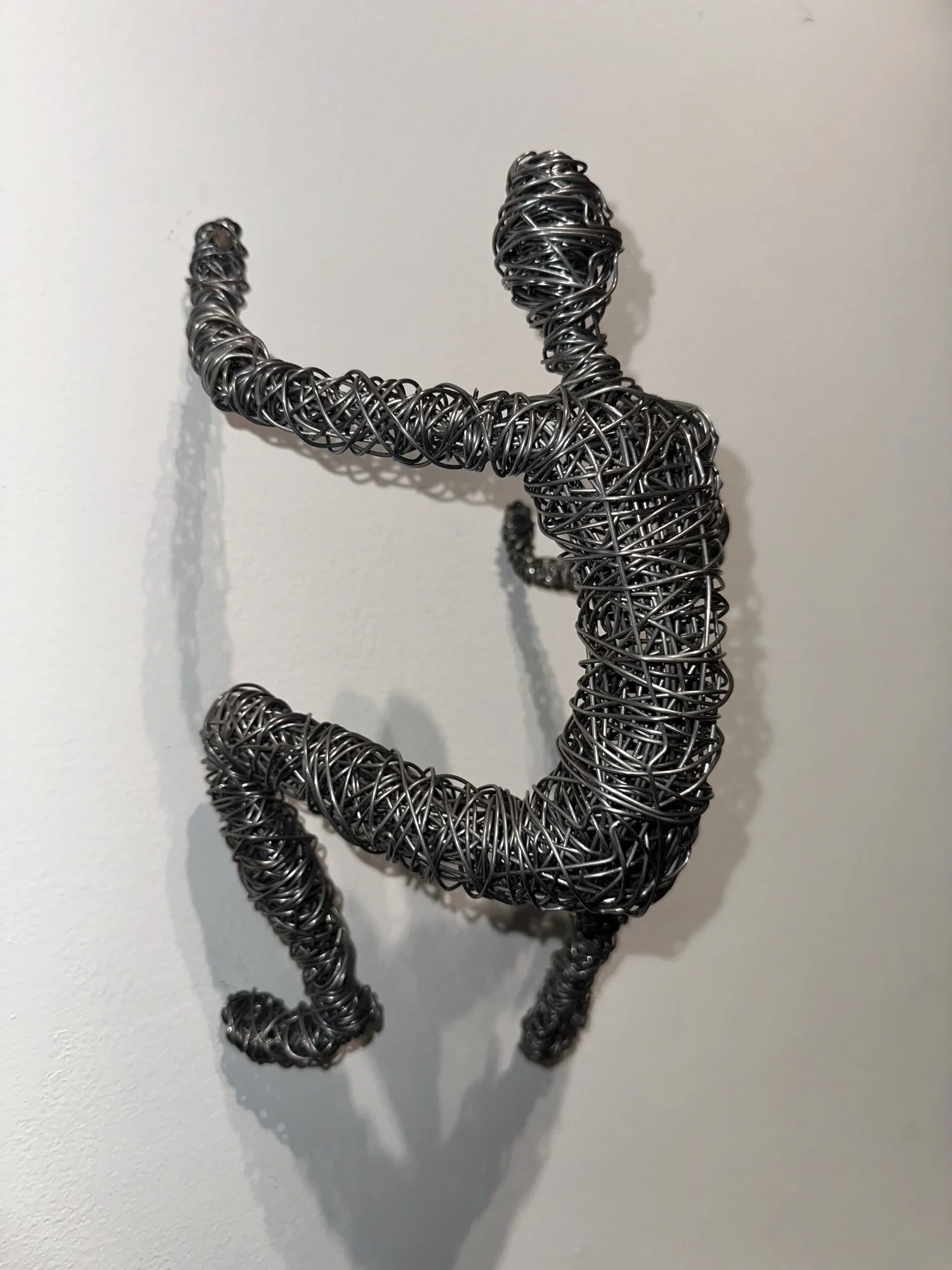 I've always made art with whatever material was available. If there was paint, I painted. If there was a pencil, I drew. On the beach, I made sand sculptures. One day I found a spool of wire in my tool drawer, the kind that's used to hang picture frames. I made two small climbing figures. I called them "wire hangers" and gave them to my cousin for her birthday. Everyone really seemed to like them and I enjoyed making them so whenever a celebration required a gift, I got out my pliers.