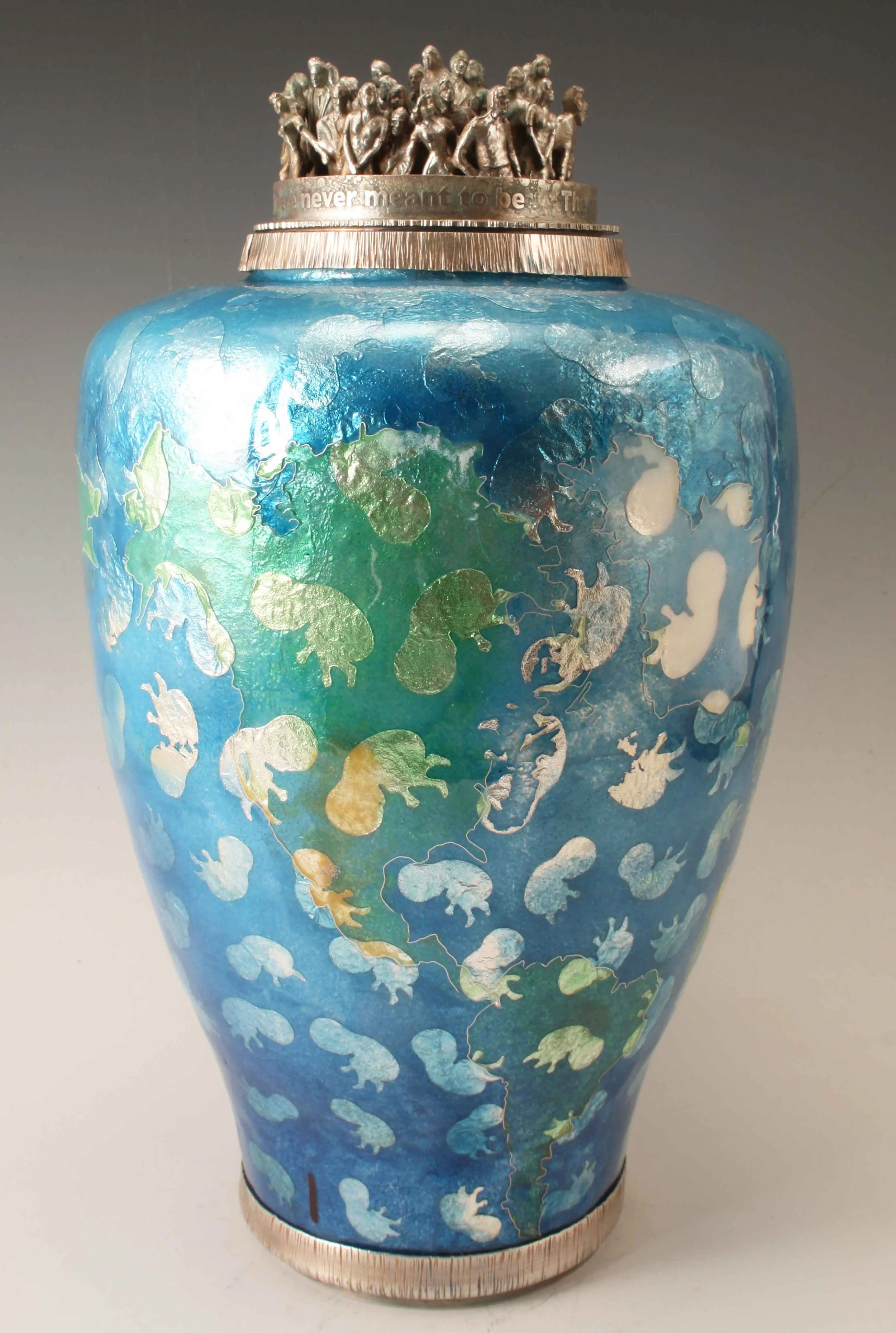 Cannot Endure, 2025, Copper, Enamel, Silver, 12 x 7 x 7 in